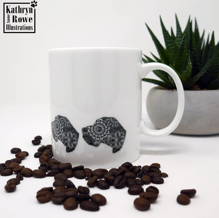 Each mug is professionally printed and heat sealed on a glossy 15oz Brighton Bone China mug EN12875-4:2006, with a premium Orca coating. The mug is dishwasher safe but NOT suitable for use in microwave ovens.