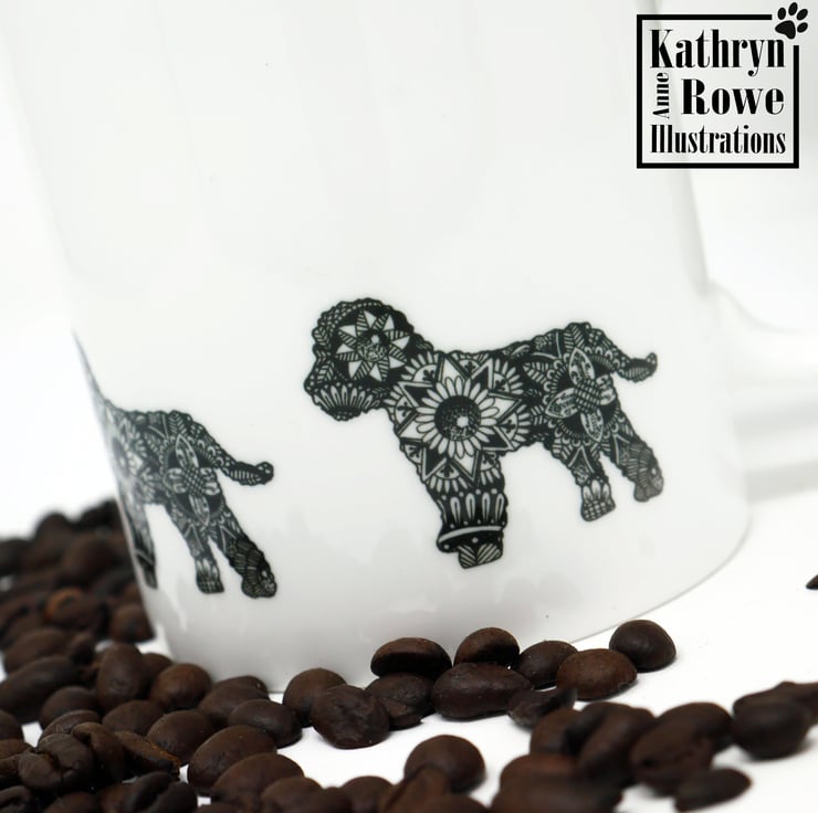 Cockapoo 15oz Bone China mug featuring my pen & ink drawing of 'Hattie' - the cute Cockapoo.