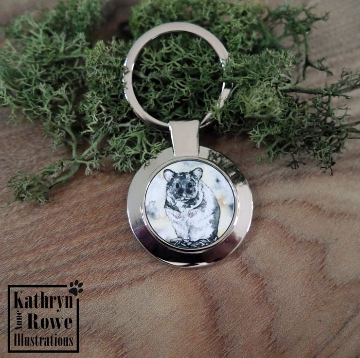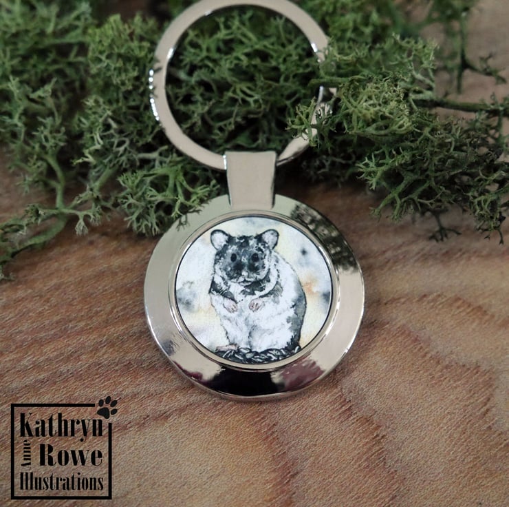 Syrian Hamster metal keyring featuring my watercolour painting of our adorable 'Pebble' the Syrian Hamster.