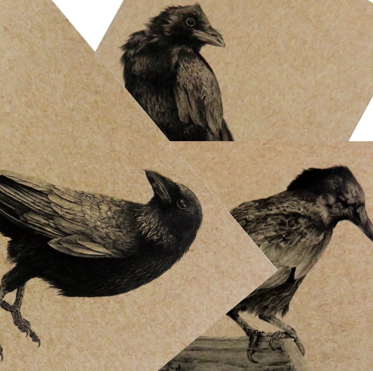 A set of 3 beautiful crow prints, printed on quality recycled card stock, taken from my original charcoal drawings. Save by buying all 3 at once - and even better the shipping is the same for 3 as for a single print :)