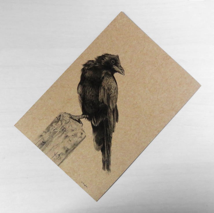 This is a set of three larger crow drawings I produced as part of my Courting Crows series, a project undertaken to study the local corvid species. I wanted to experiment with print options for these and so I've done my first run on natural recycled card which I think gives the prints a lovely rustic/aged feel.