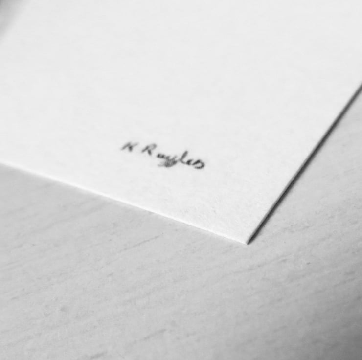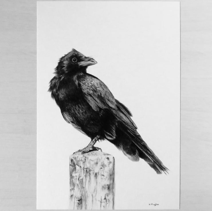This is one of a set of three larger crow drawings I produced as part of my Courting Crows series, a project undertaken to study the local corvid species. I wanted to experiment with print options for these and so I've done my first run on recycled card.