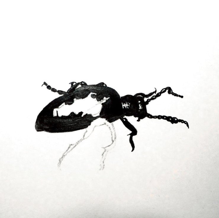 I just couldn't resist this critter when I found him - a deep glossy black with such a high shine and that head gear :) My first ever beetle drawing.