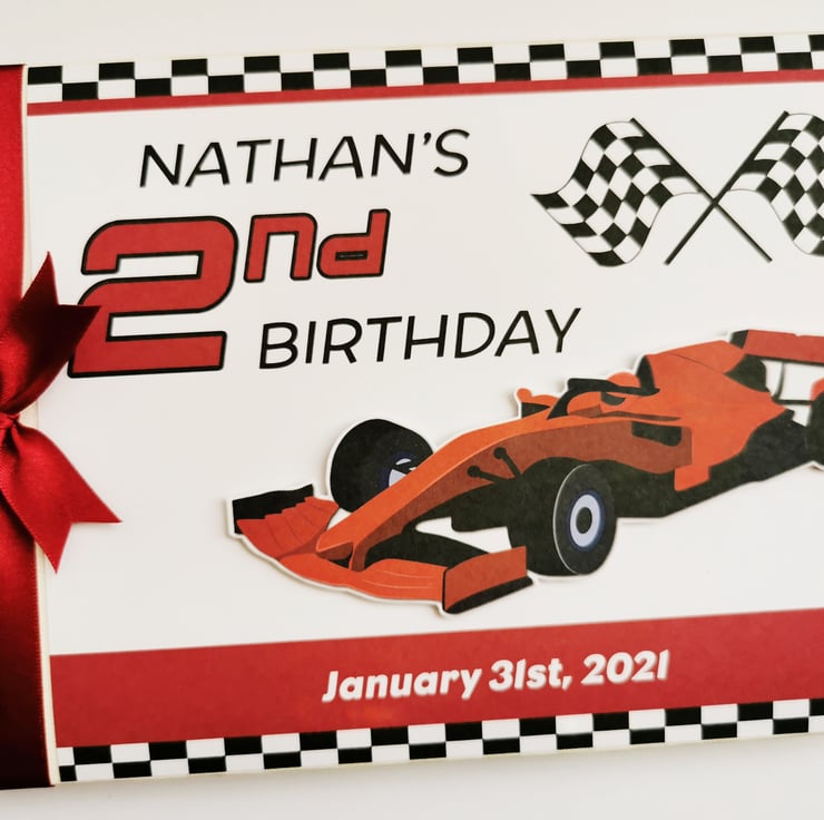 Racing cars Birthday Guest book, racer birthday party book, gift