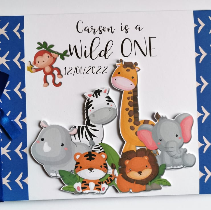 Safari birthday guest book, Wild one birthday book, blue safari birthday gift
