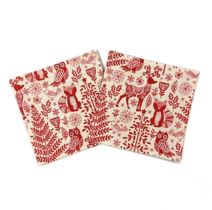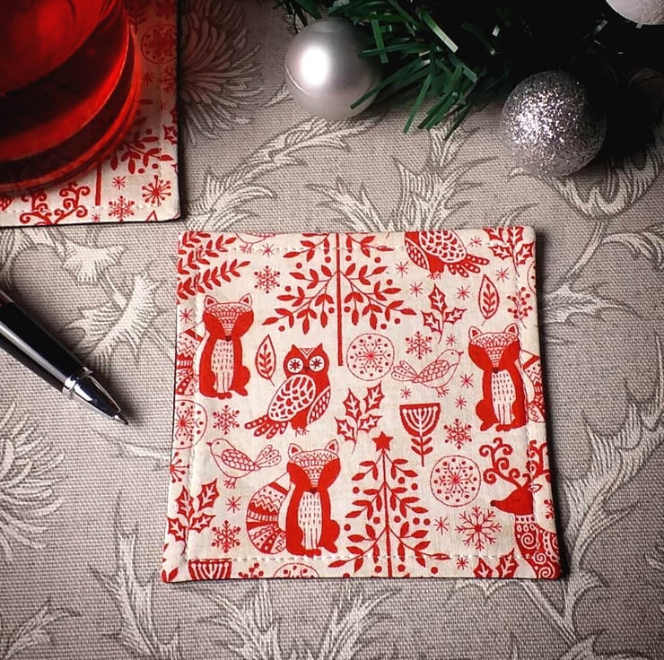 Set of 2 printed cotton coasters handmade in Glasgow, Scotland