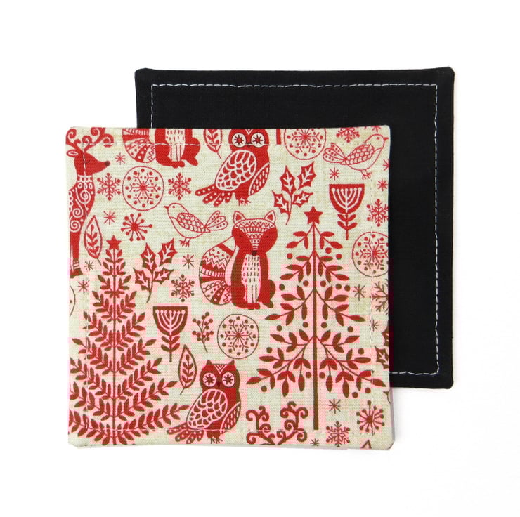 Each coaster is approximately 10cm x 10cm (4" x 4"), and has 2 layers of interfacing for added structure