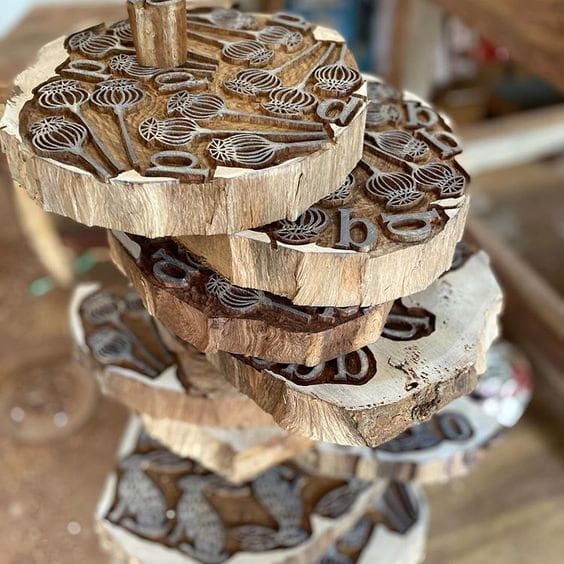 Hand carved Indian wooden printing blocks, Made on a fair trade project in Jaipur