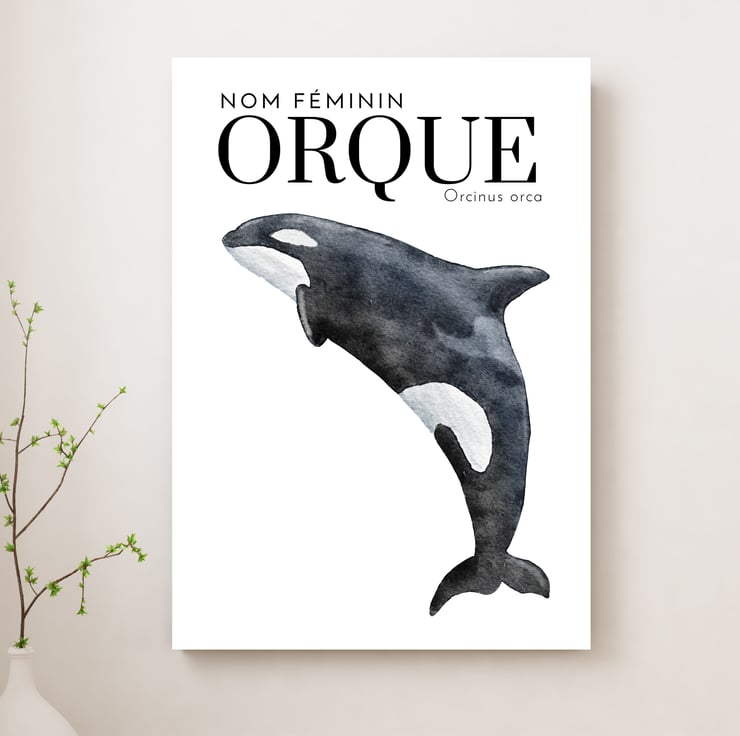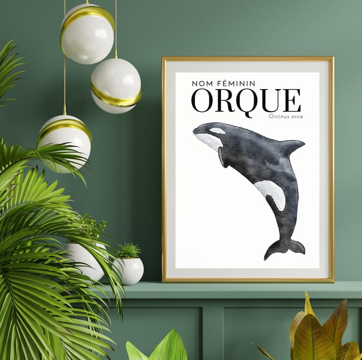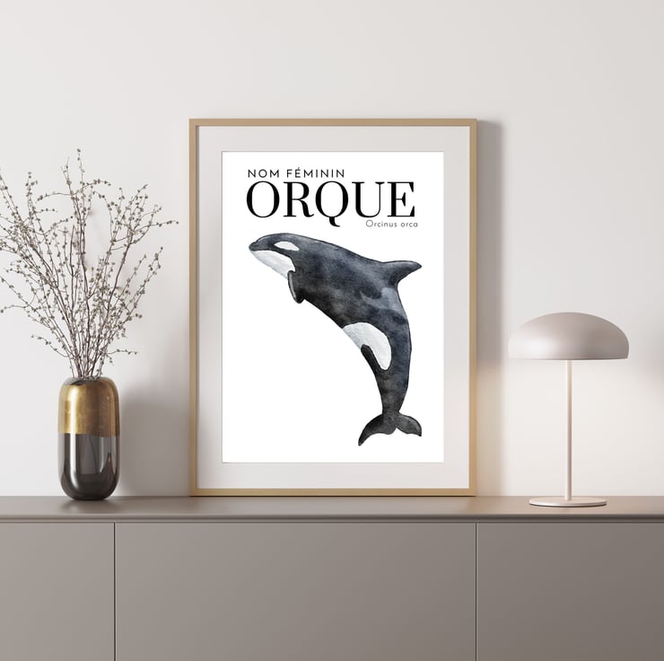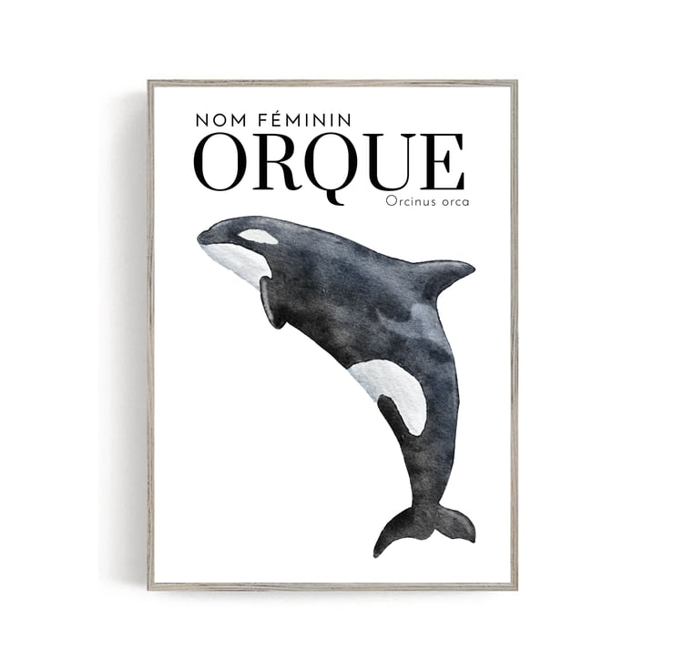 Simple nautical-inspired Orca "Orque" art print by Baba Boop.