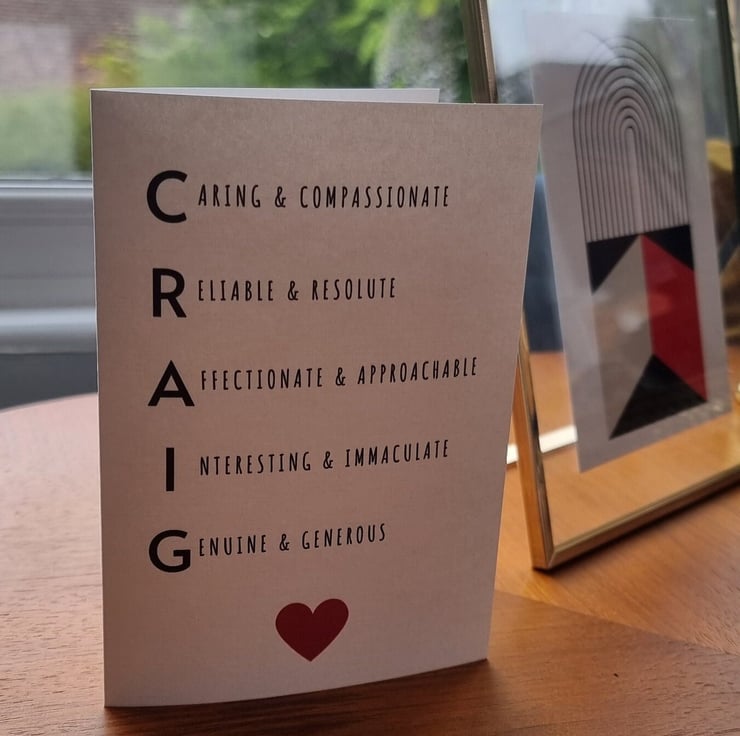Create a personalized Acrostic Poem card for your loved ones. Use the first letter of their name or a special word to make it unique. If you need help with the text, just send us the name or word, and we'll craft the perfect poem for the recipient.