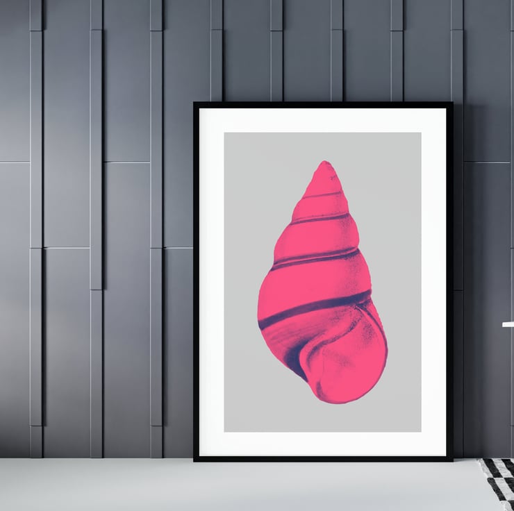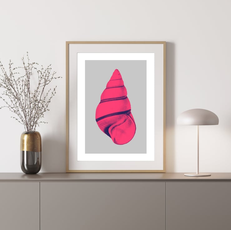 Elevate your space with this chic Pink Shell pop art print, meticulously crafted by Baba Boop. Ideal for various rooms, especially the kitchen, hallway, and living area.
