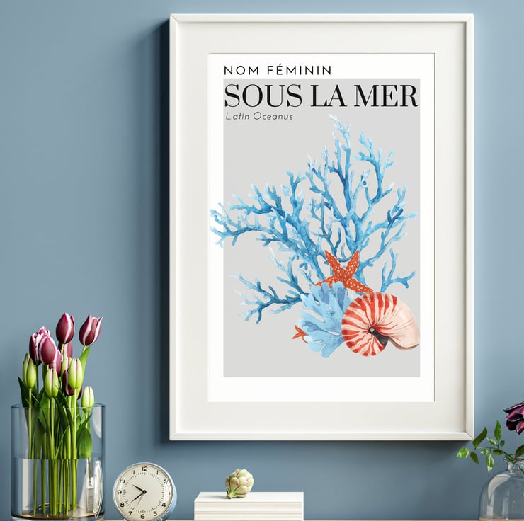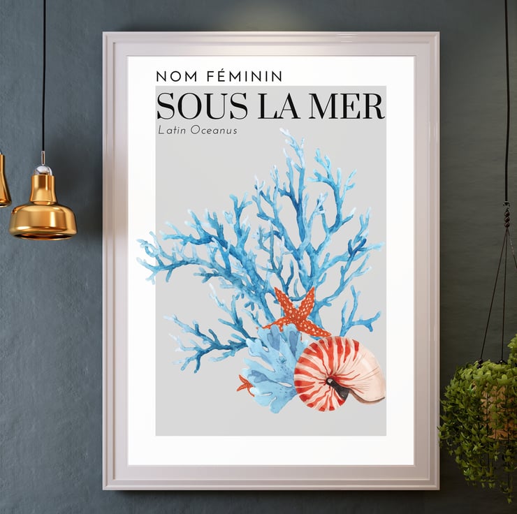 Introducing 'Sous La Mer' Art Print by Baba Boop - Elevate your space with this stylish design, perfect for kitchens and dining areas.