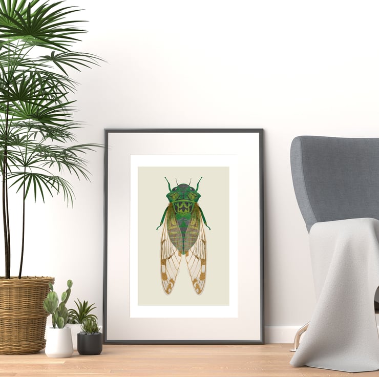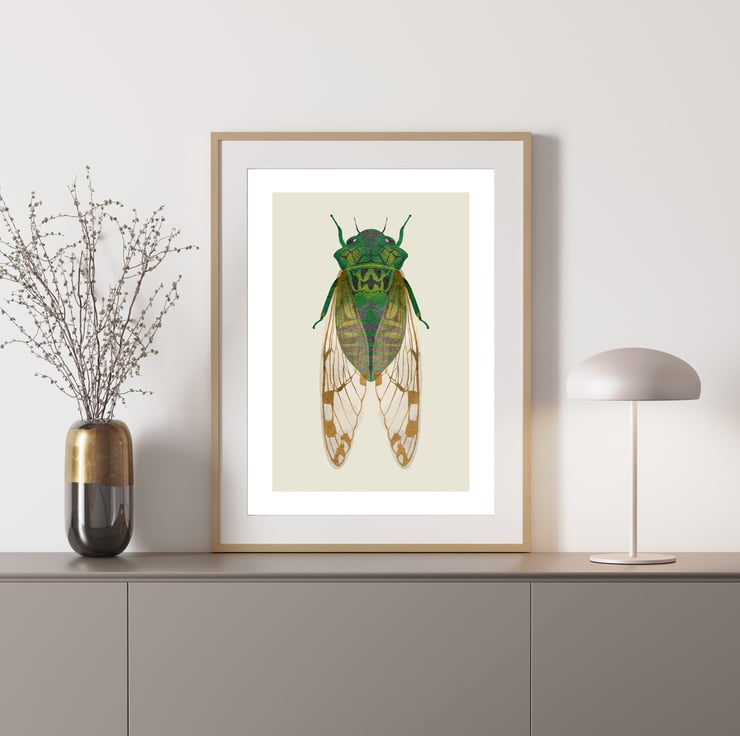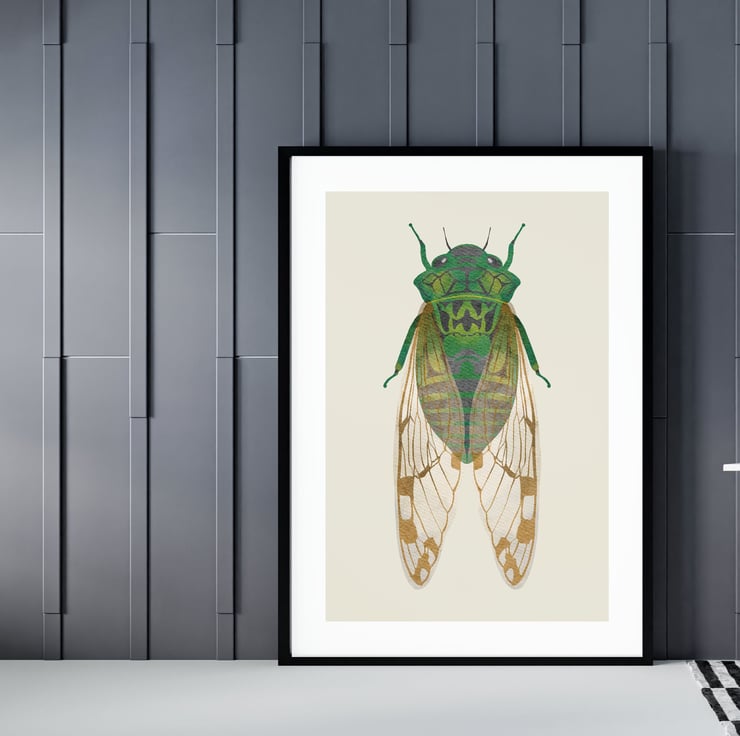 Introducing an Emerald Green bug art print created by Baba Boop—a blend of style and elegance, ideal for various spaces in your home. While it complements any room, it's particularly well-suited for the kitchen, hallway, or living room.