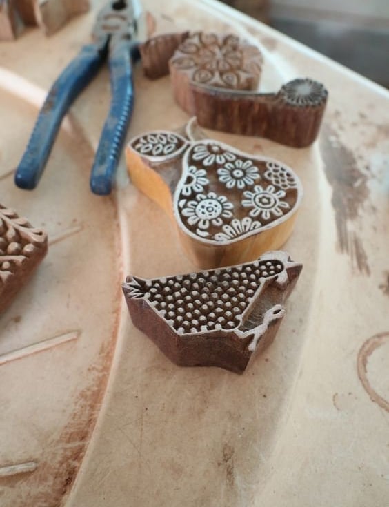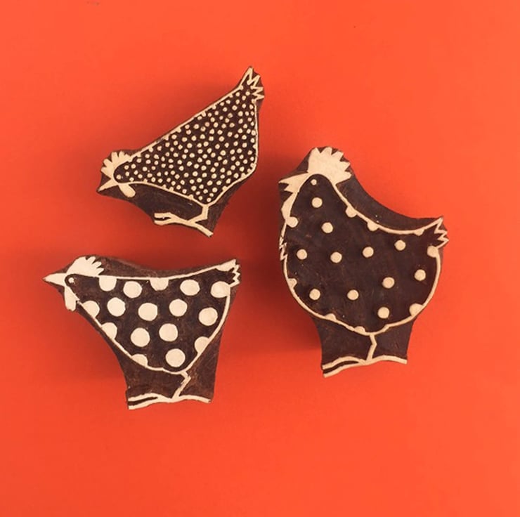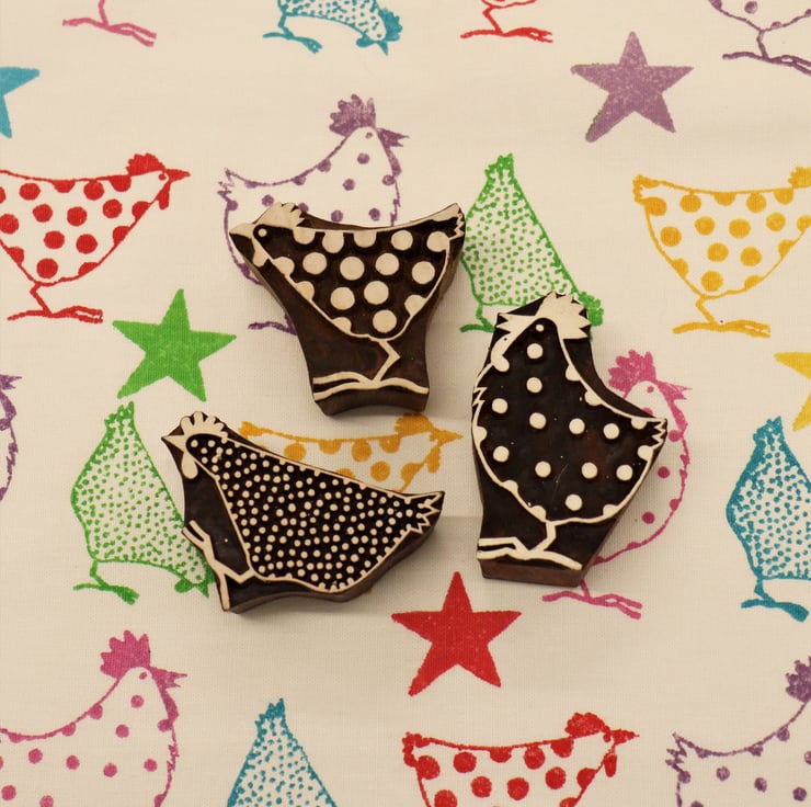 Our Indian wooden printing blocks are hand carved on a Fairtrade project in Jaipur, India and are made using a sustainable wood known as Sheesham. The designs are traced and carved onto the wood. The blocks are then left to soak in mustard oil for several days, this preserves the wood making it non-absorbent. Indian blocks are by design, very traditional and we wanted to introduce blocks with a more contemporary look as well as stocking the original designs you see in Indian carving workshops.
