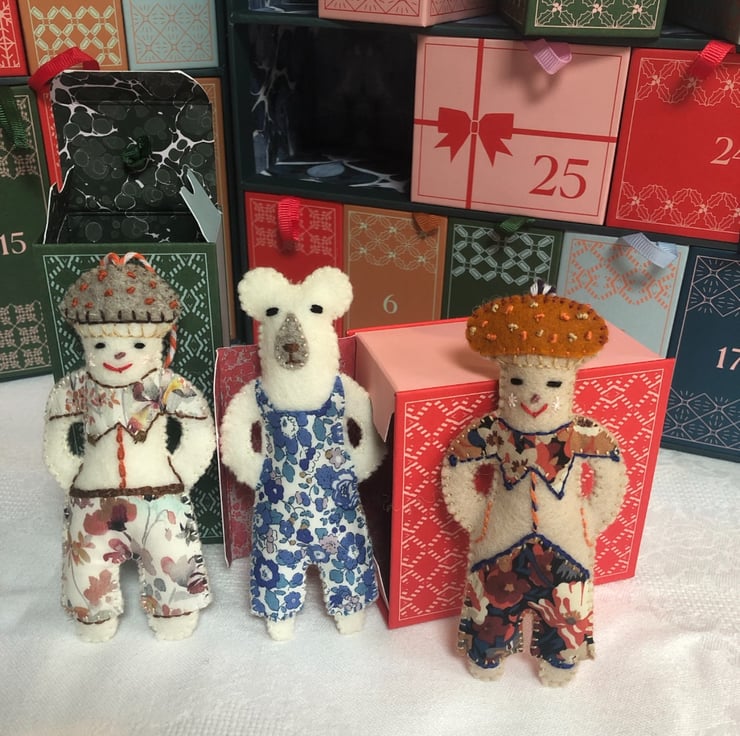 All of my makes are eco friendly and made to last from 100% wool felt and stuffed with washed wool fleece sourced from Yorkshire. I use DMC cotton thread to embroider folk patterns and stitches creating totally unique heirloom treasures.