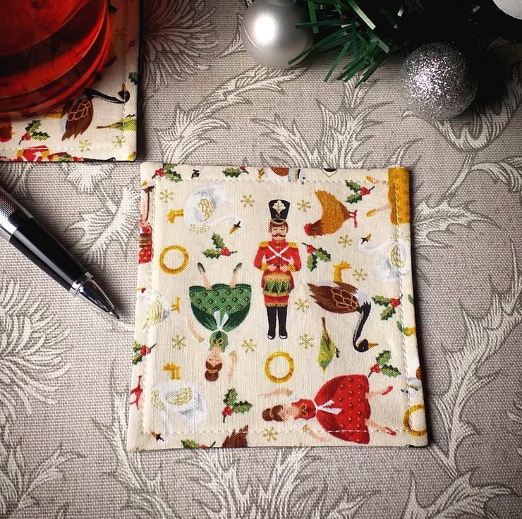 Each coaster is approximately 10cm x 10cm (4" x 4"), and has 2 layers of interfacing for added structure
