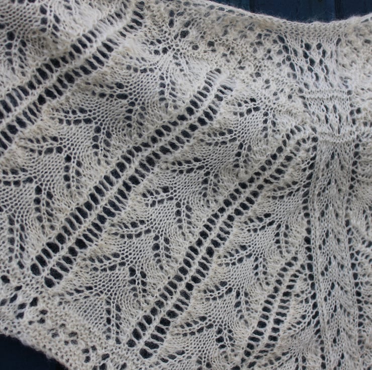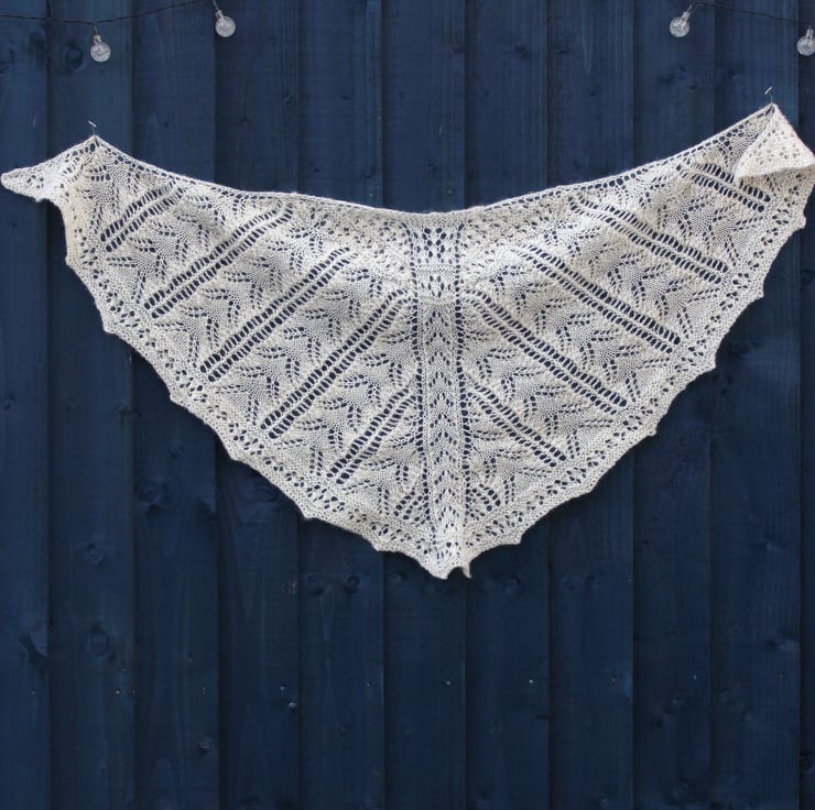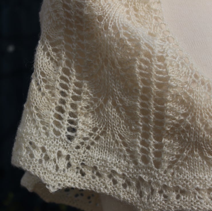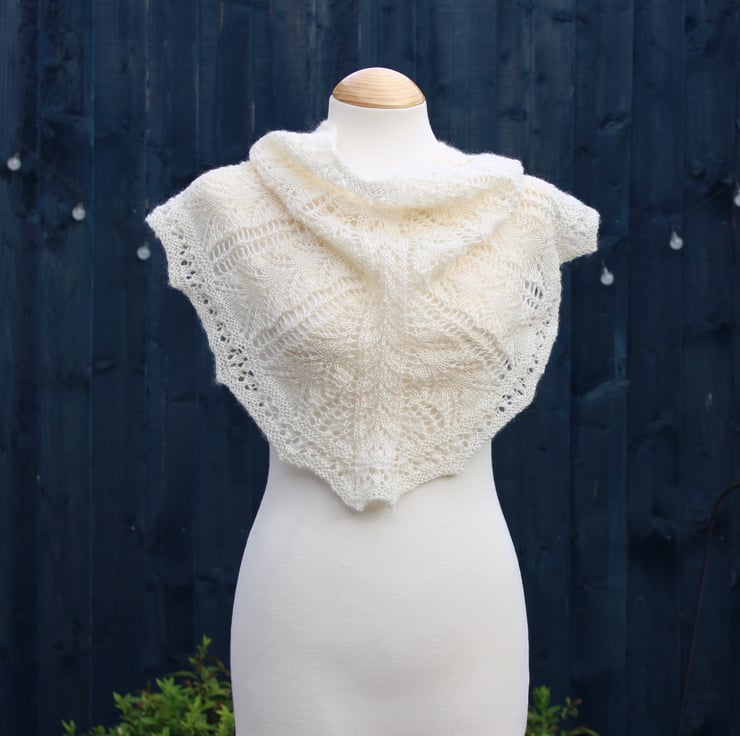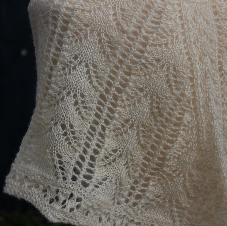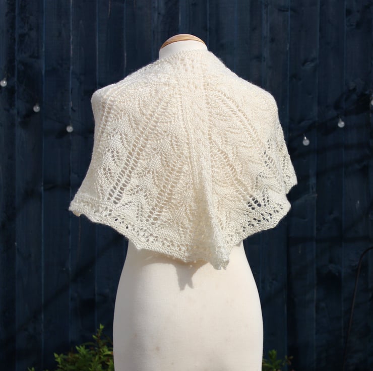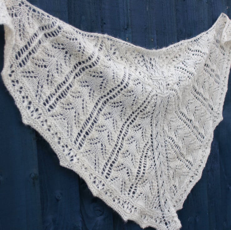 If you would like to see more photographs and read about how this shawl was made please visit my blog post about it. http://drapedinlacebyjuliablakeman.blogspot.com/2018/03/same-shawl-different-colour-and.html