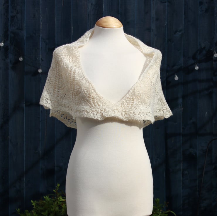 Natural undyed white Teeswater Shetland Wool knitted lace shawl - design F201