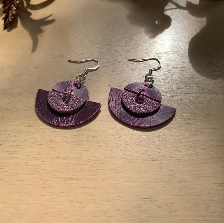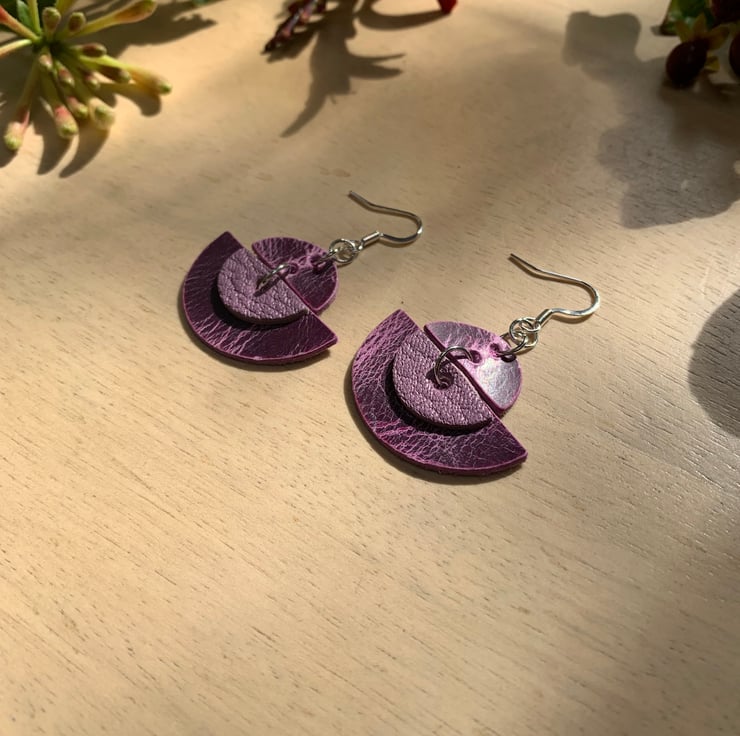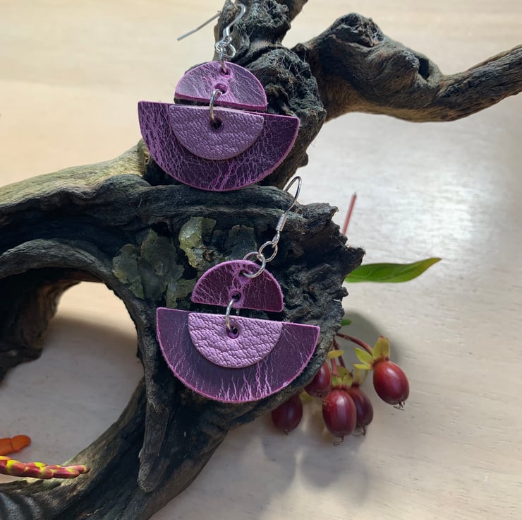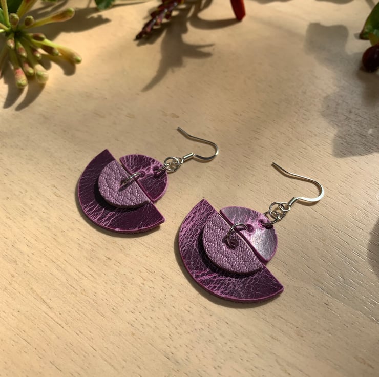 These dainty Sensu earrings feature purple and lilac coloured leathers.