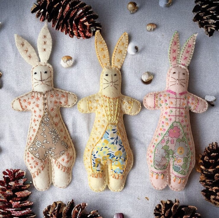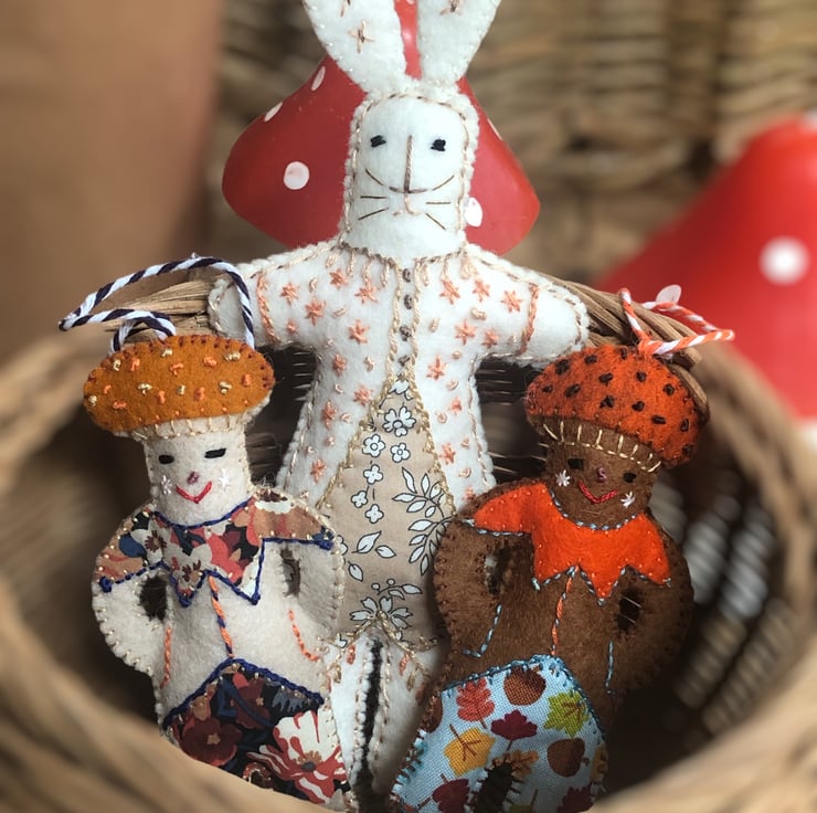 All of my makes are eco friendly and made to last from 100% wool felt and stuffed with washed wool fleece sourced from Yorkshire. I use DMC cotton thread to embroider folk patterns and stitches creating totally unique heirloom treasures.