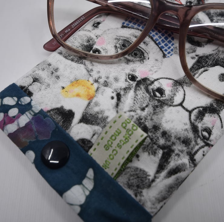 An adorable small gift for animal lovers. Created from quilters cotton with batik cotton lining this case will keep spectacles clean and safe from scratches. The various animals are wearing glasses too.the case is large enough for all size specs including large sun shades.