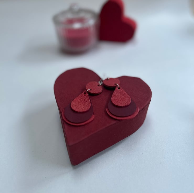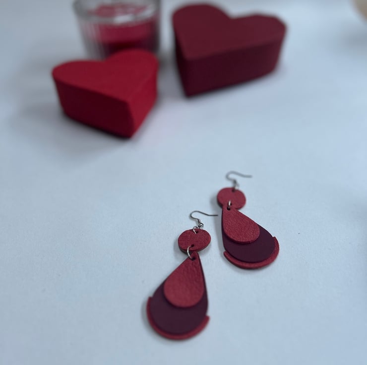 Sukaretto earrings feature red coloured leathers.