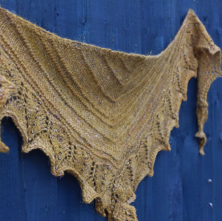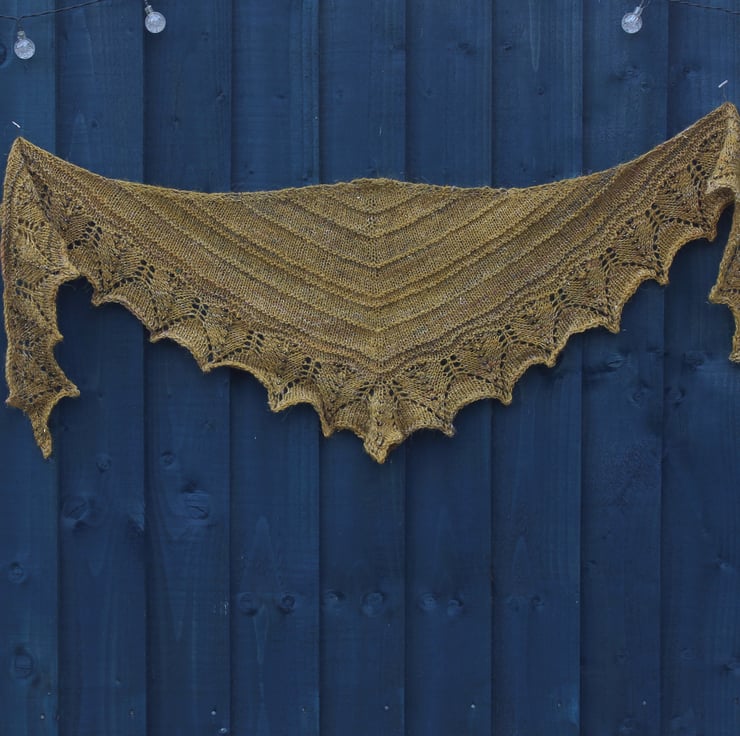If you wish to see more photographs and read about how this shawl was made please visit my blog post about it. https://drapedinlacebyjuliablakeman.blogspot.com/2018/11/oh-no-not-another-one-design-f213.html