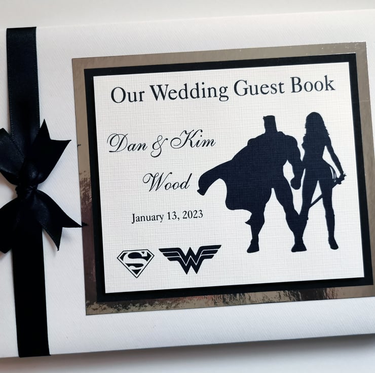 Superman and Wonderwoman wedding guest book, superhero wedding book, gift