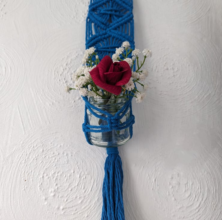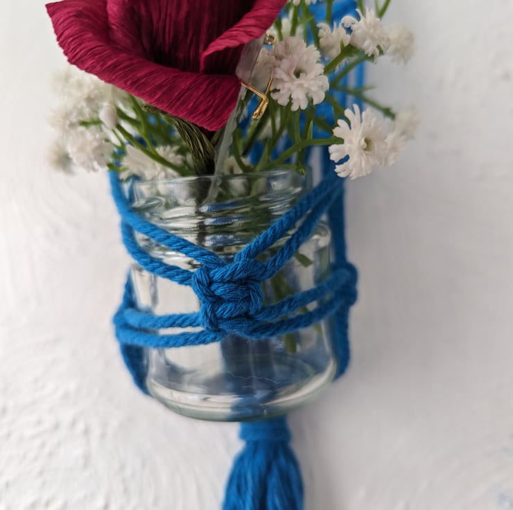 Perfectly petite at approximately 30 cm long, this plant hanger fits a 5cm pot or a medium-size air plant and completes any small wall space. It hangs flat against the wall which allows you to display your plants in a fun and different way. It is made from 100% cotton, hangs from a wooden ring and comes in a variety of colours to suit your home - please pick from the options available in the drop down list.