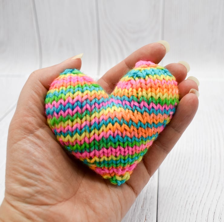 SOLD - Hand knitted heart - pocket hug - Multicolour Neons