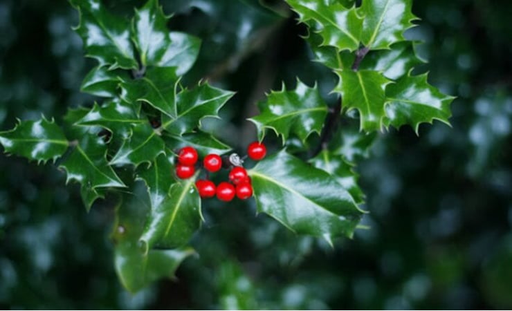The Holly tree, with its shiny, spiky, thick leaves and bright red berries, is one of the most beloved and respected trees in Celtic mythology. It is said to be the evergreen twin of the Oak and while the Oak controlled the light half of the year, the Holly tree controlled the dark, winter months. Due to its resistance to lightning, it has historically been associated with gods of thunder, and was often planted near dwellings to protect people from lightning strikes. Appreciated in the animal kingdom too, the Holly tree is often sought out by nesting garden birds, providing natural protection from predators. Hollies tend to get less attention from us humans in the Spring months, but their delicate, scented flowers are especially loved then by bees and butterflies.