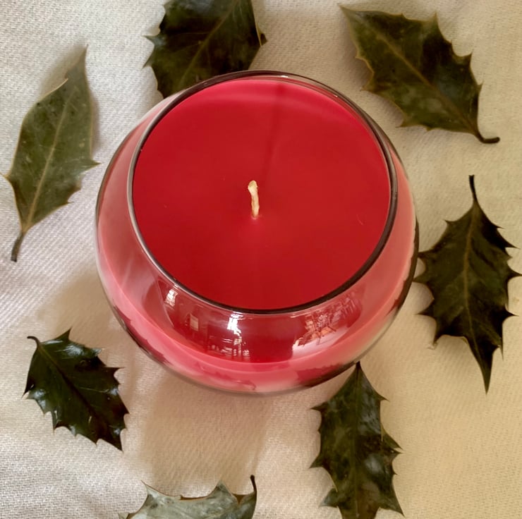Handmade with 100% eco-friendly soy wax and a sustainable cotton wick, this beautiful, crimson bowl candle is infused with a red berry and holly fragrance oil which has a strong undertone of cedar, black raspberry, balsam and lemon peel. It may be especially reminiscent of Christmas, but you can enjoy it all year around! Its large glass bowl container also not only looks good, but is perfect for many years’ re-use as a vase or jar in your home. The candle is carefully wrapped in non-bleached tissue and comes in its own bespoke Scents of Arran presentation gift box with a handy care guide - the perfect present ready to go!