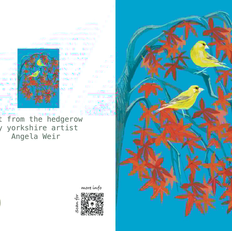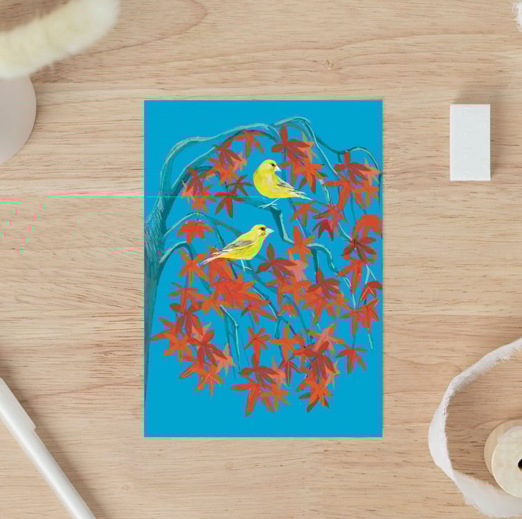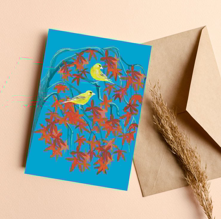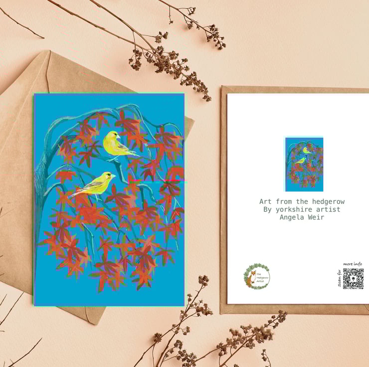 This Individual and unique art card inspired by the green finch and acre in the card and offering the perfect blank greetings card