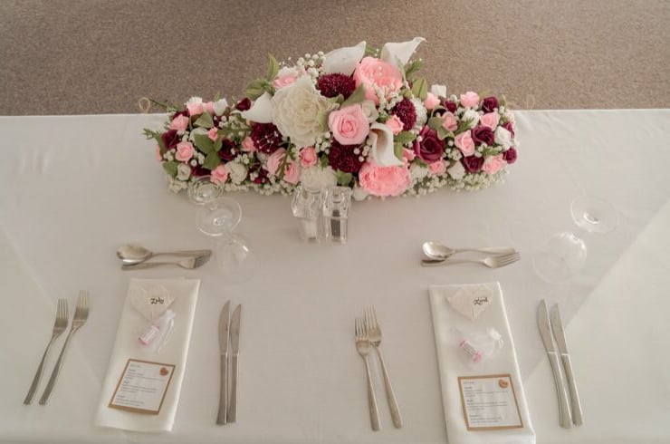 The flowers used within this particular example are roses, peonies, carnations, calla lilies and pompom flowers in pink, white and burgundy but please message me using the 'contact' link at the top of my page so we can discuss the colour scheme of your big day and I will create these flowers in the colours to match and complement the bridal bouquet. As this is a custom order this will take longer to create than some of the other listings in my shop so please give me as much notice as possible (at least 3 months) so I can source the materials and cut, shape and assemble the centrepiece in good time for your special day.