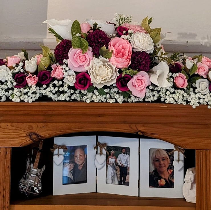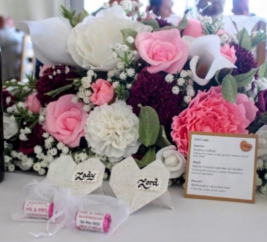 The centrepiece is assembled by inserting each individual stem into shaped dry foam and, as crepe paper flowers last a lot longer than fresh flowers, is a perfect addition to your home after your wedding as a stunning keepsake to remind you of your special day!