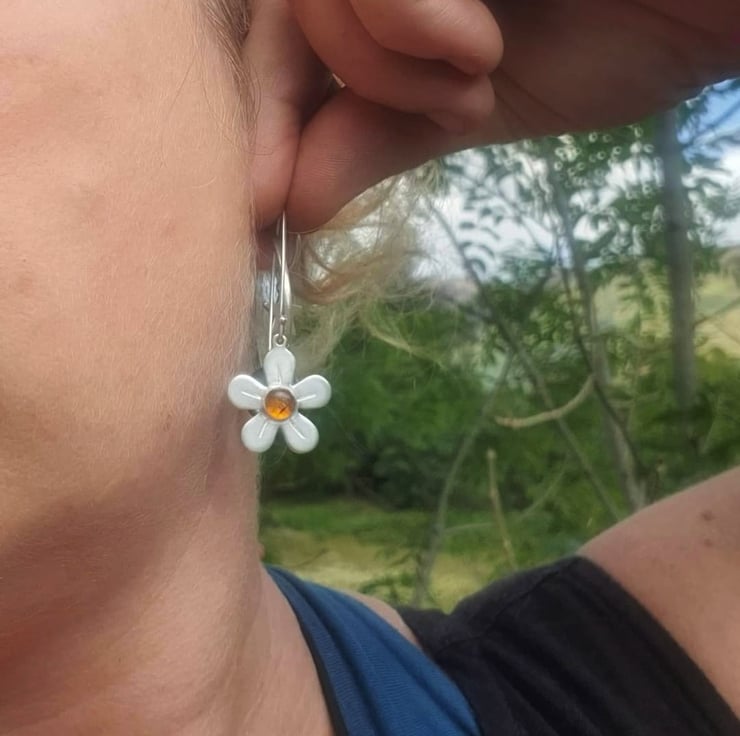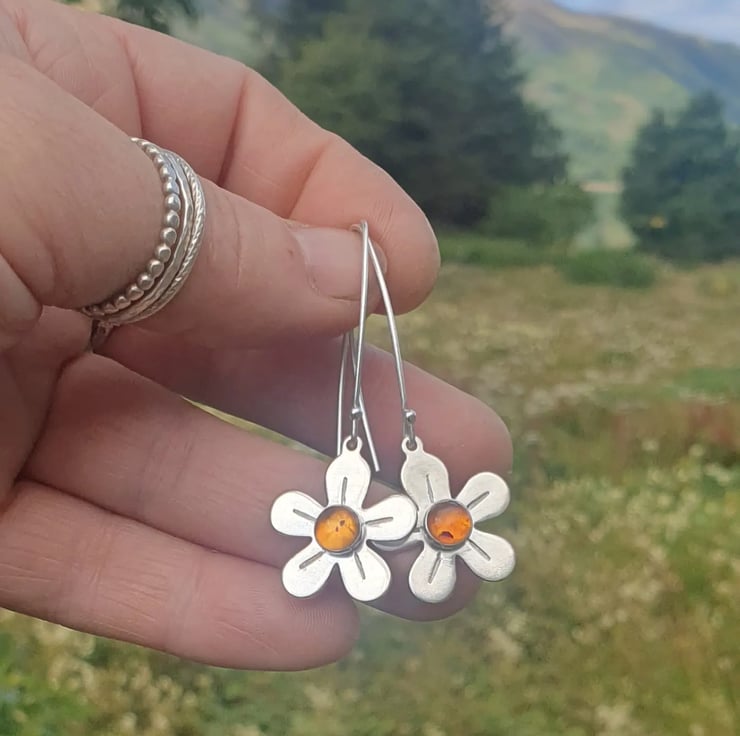 These beautiful statement earrings are made with sterling silver flowers.