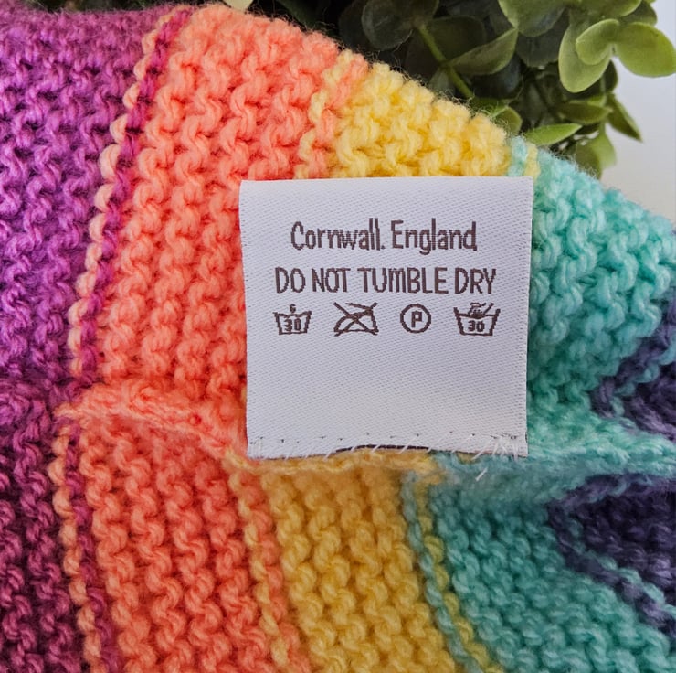 Baby knitwear is designed and hand crafted by Demelza Designs in Cornwall meeting UK baby safety standards, Only branded premuim acylic, acrylic/natural fibre blends or pure natural fibre yarns are used in baby knitwear which conforms to BS984/76 standards.