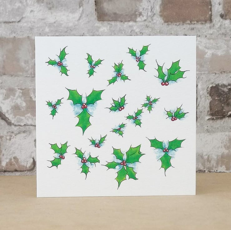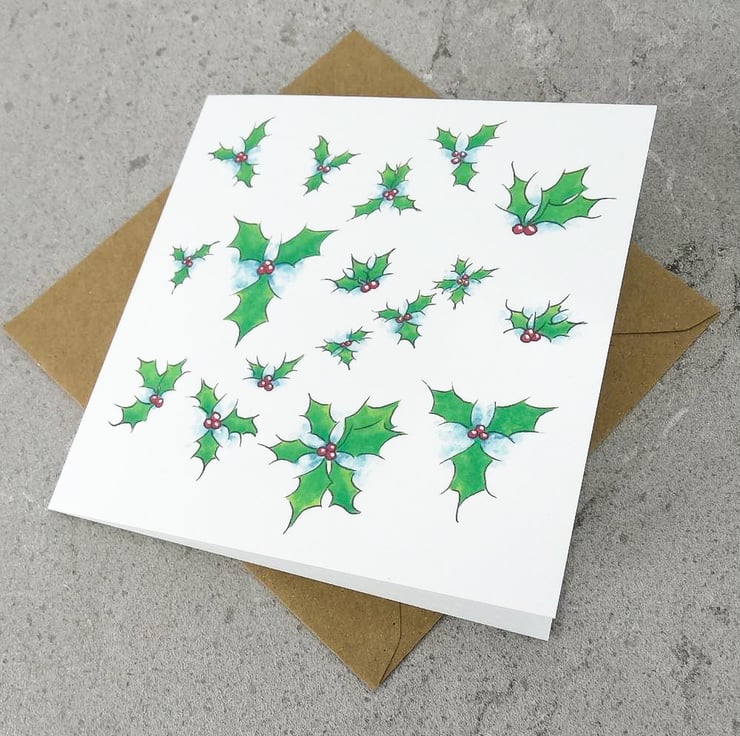 This ecofriendly Holly Christmas card has been printed using my own original artwork