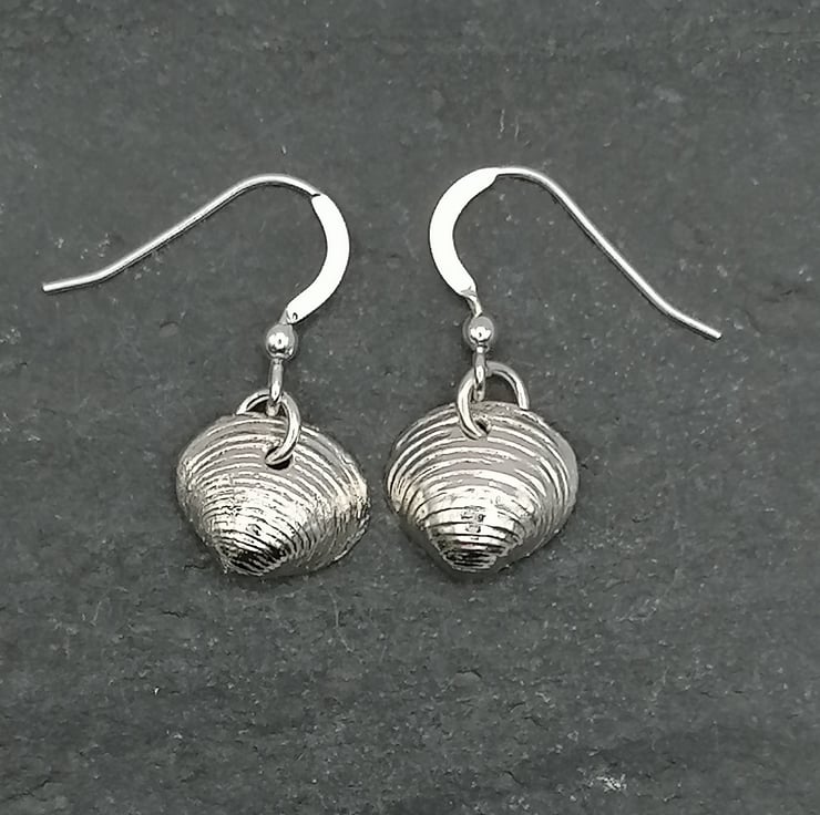 These clam shells measure approximately 1.2cm high and is supplied on sterling silver ear hooks.