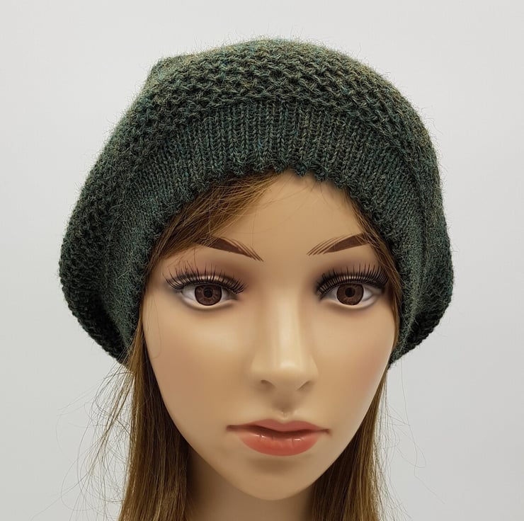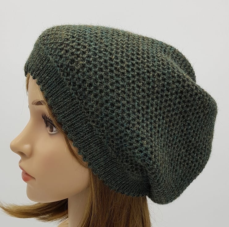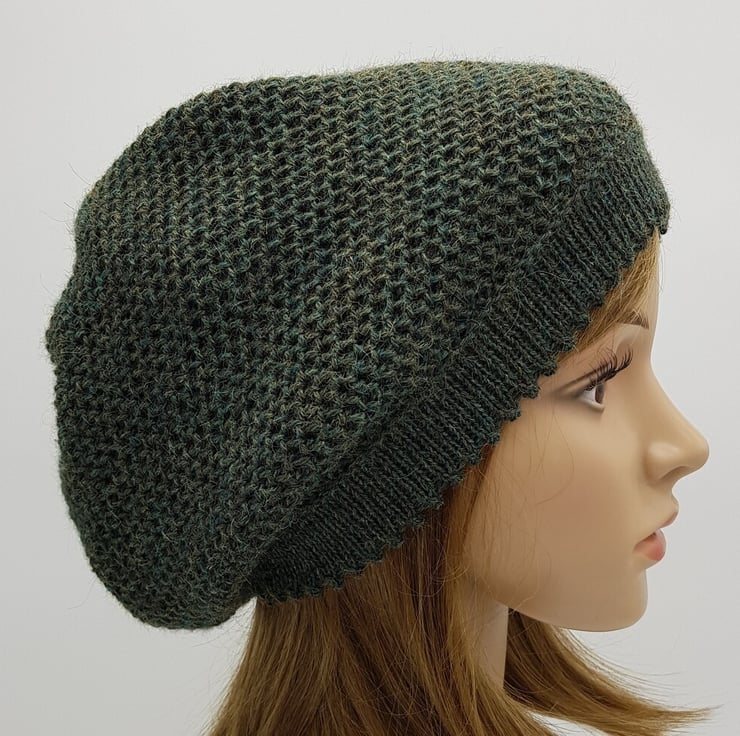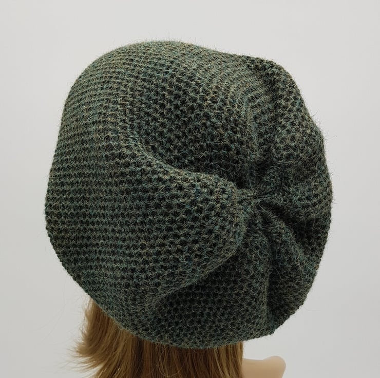 Handmade alpaca hat for women, knitted baggy beanie, slouchy tam for women.