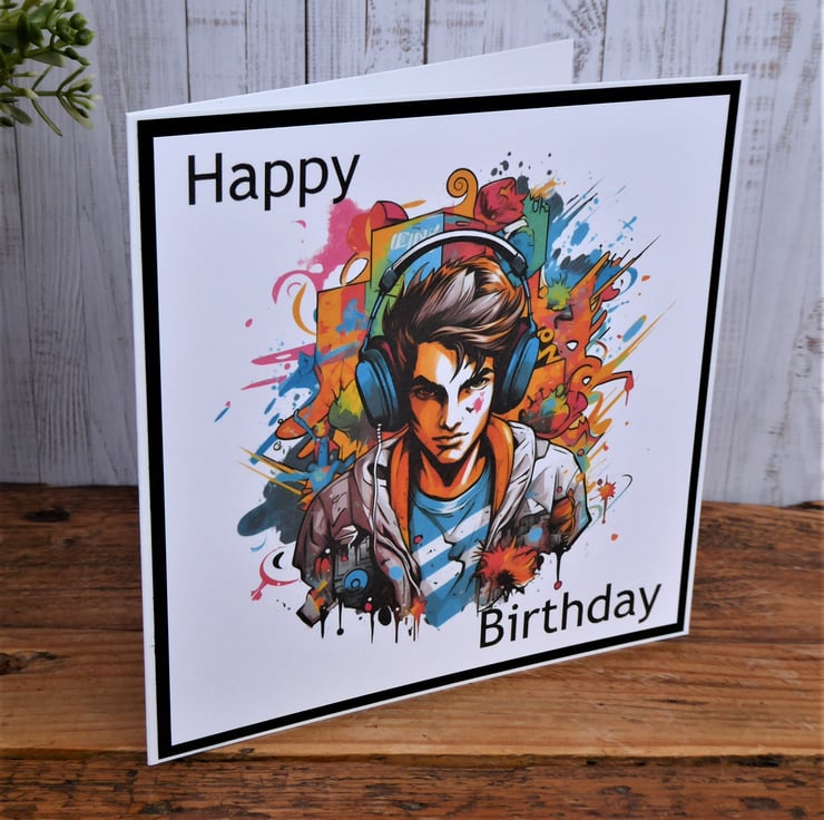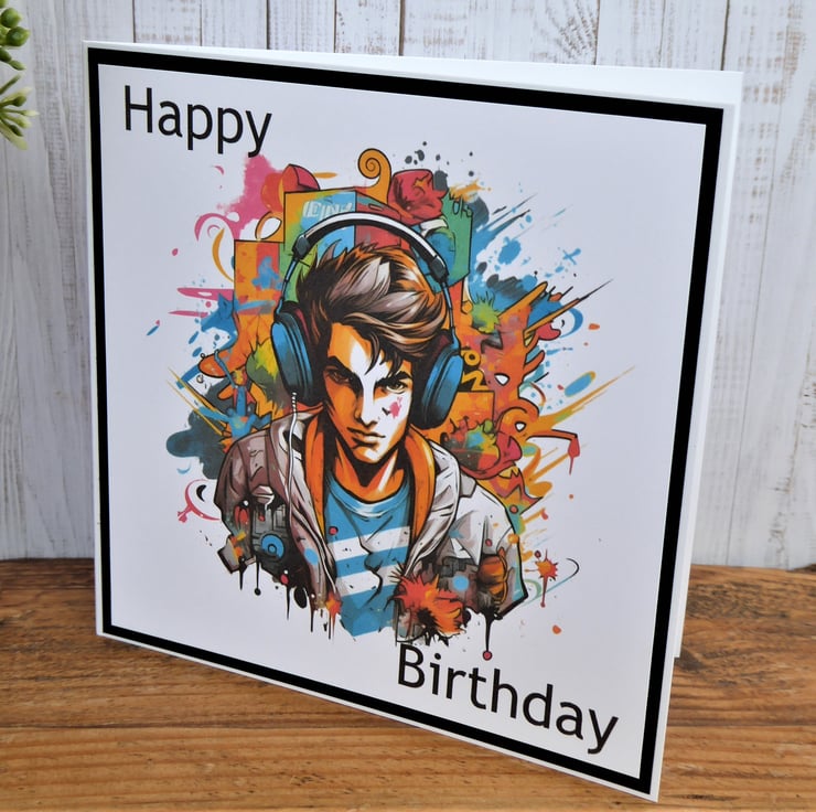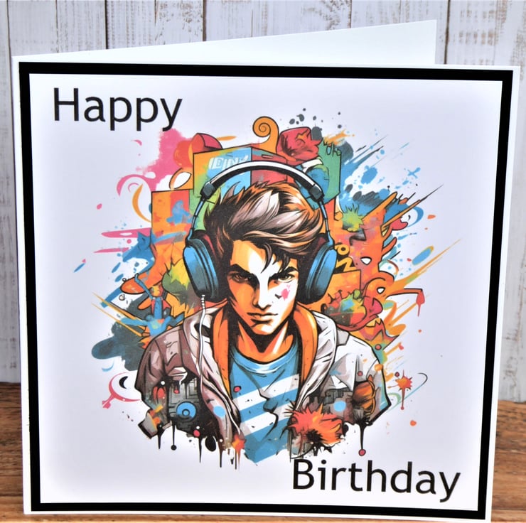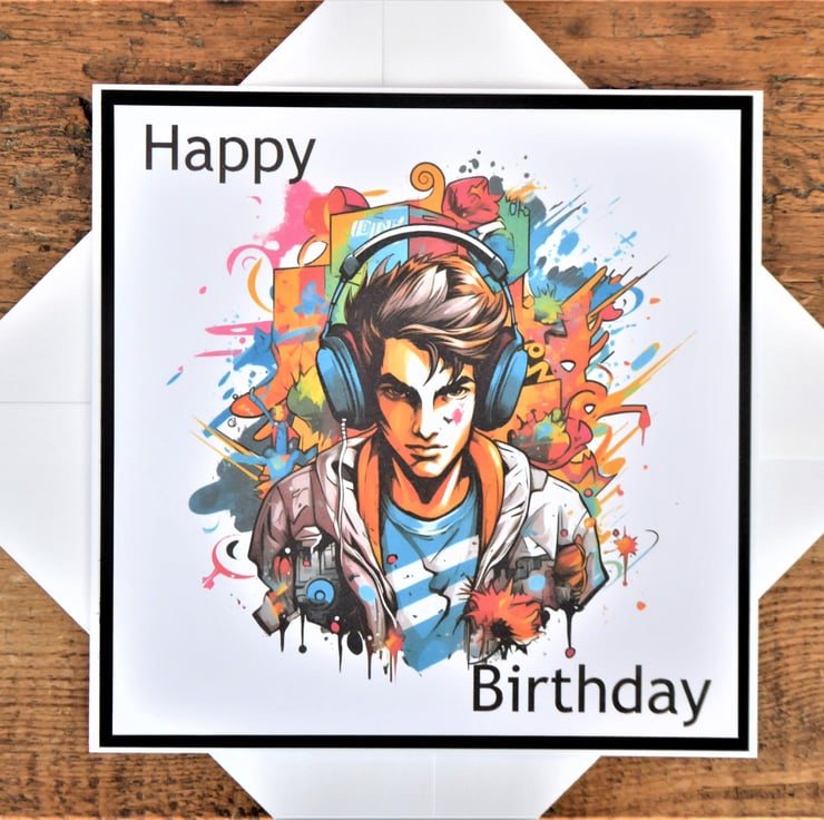 Birthday Card made from 300gsm white card. Printed image onto white card, layered up onto black card and added the sentiment.