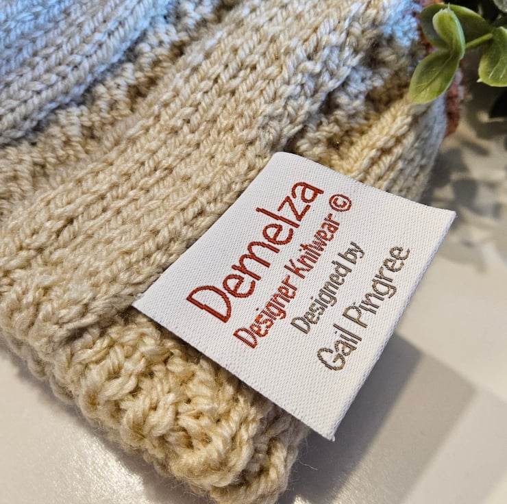 The hat has the branded soft luxury damask Demelza Designs garment label attached to the back seam with the care instructions woven within it. A Demelza Designs garment swing tag is attached to the front providing a professional finish if gifting.