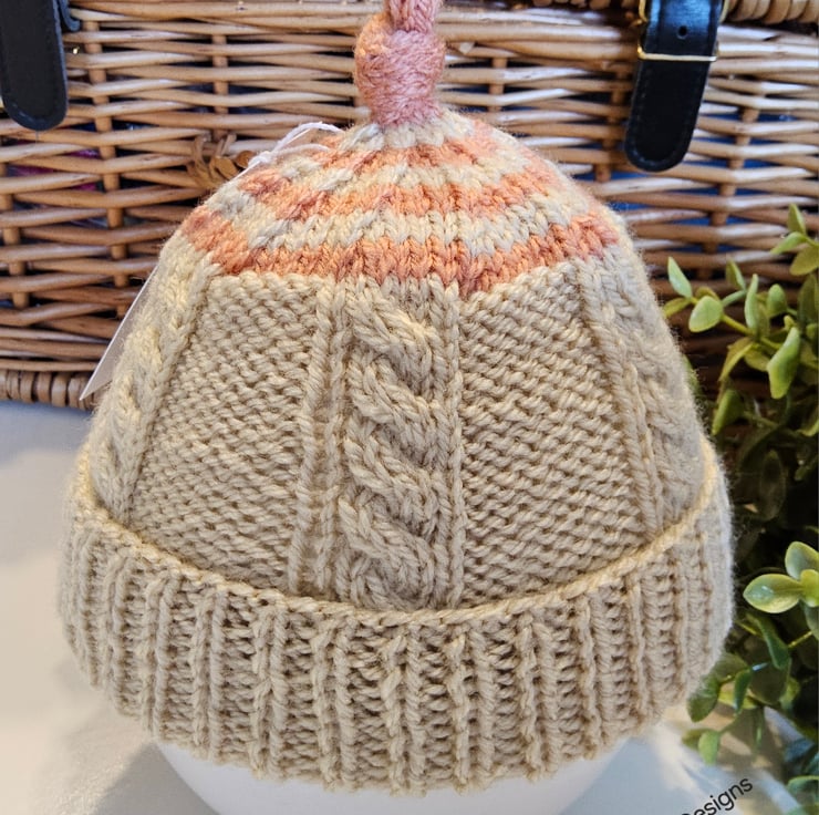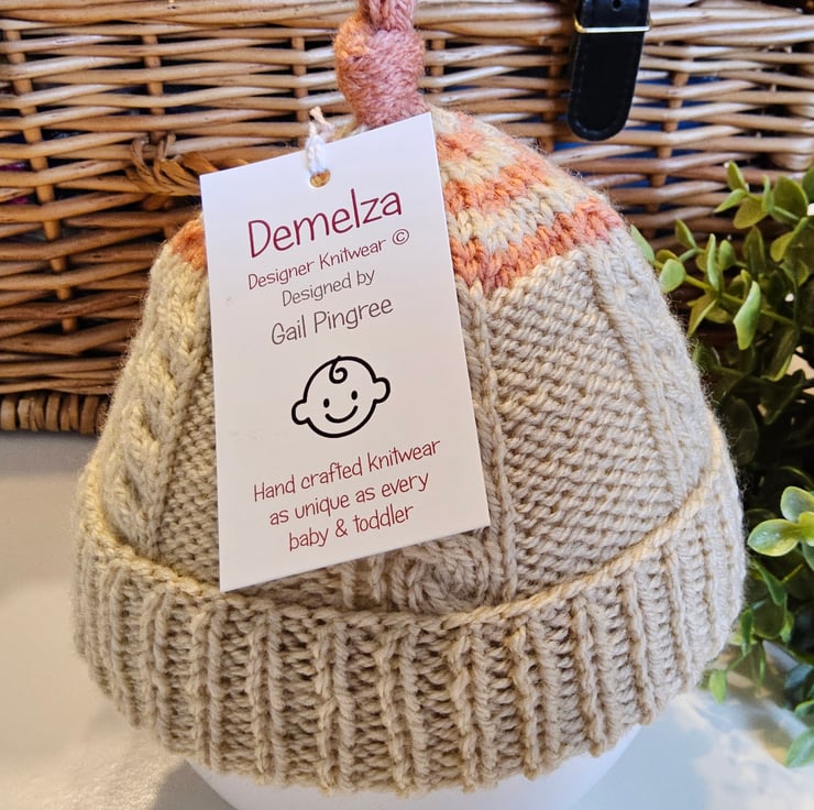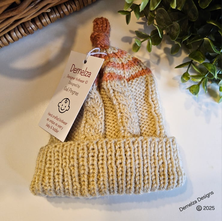 An adorable practical little hat designed and hand knitted in Cornwall using quality British premium acrylic yarns. All yarns are machine washable at low temperature settings.