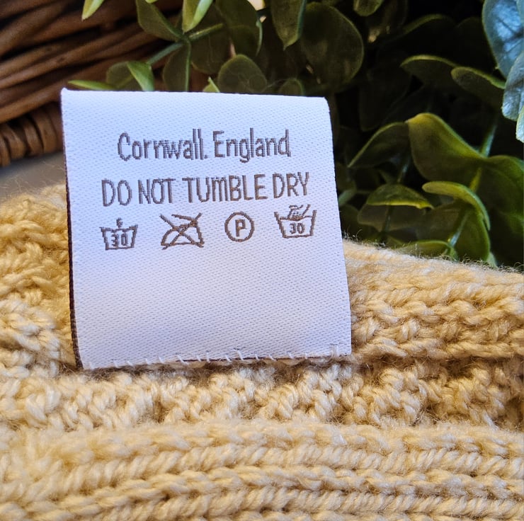 Baby knitwear is designed and hand crafted by Demelza Designs in Cornwall meeting UK baby safety standards, Only branded premuim acylic, acrylic/natural fibre blends or pure natural fibre yarns are used in baby knitwear which conforms to BS984/76 standards.