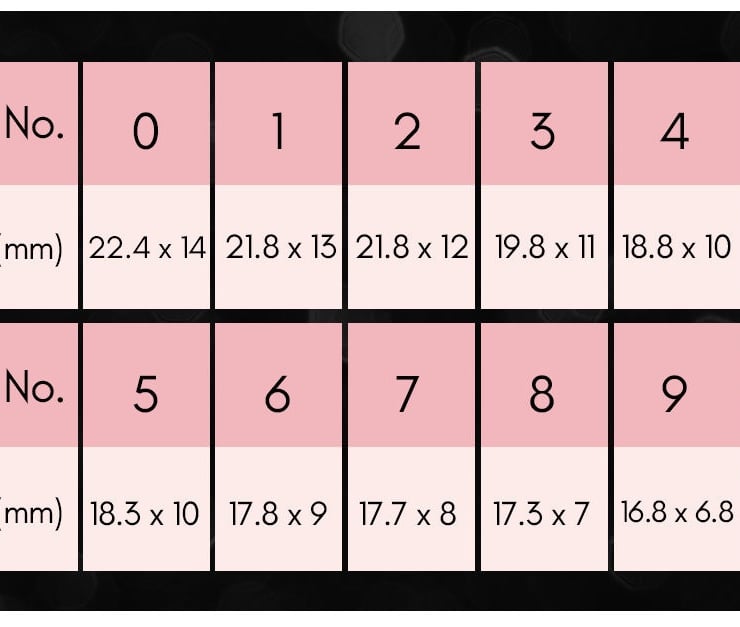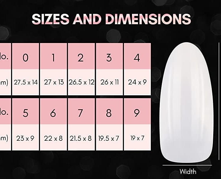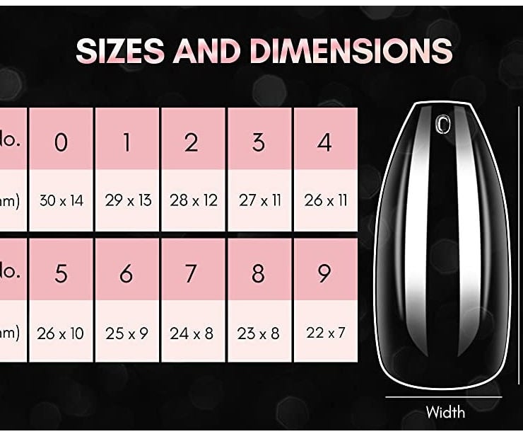 You will receive 2 of each nail size (0-9).