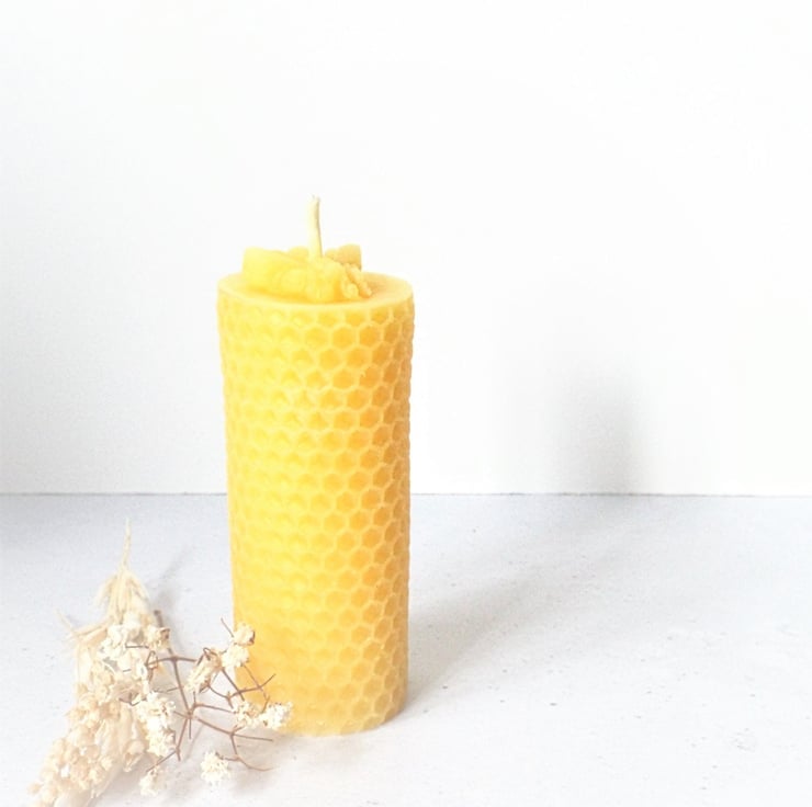 Beeswax is a natural product, can vary in colour and aroma and is a sweet simple renewable fuel that burns long and strong. The brightness is of the same light spectrum as the sun. It has the highest melting point of any other candle wax and therefore provides long burn times with minimal smoke