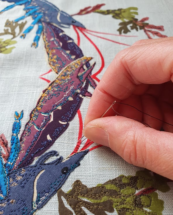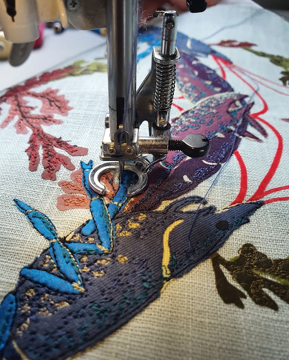 I create original textile art using a combination of fabric appliqué, freehand machine embroidery and hand embroidery.