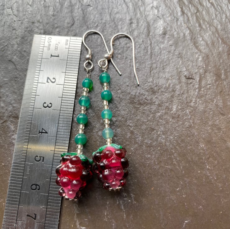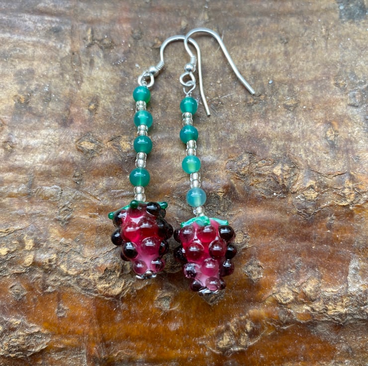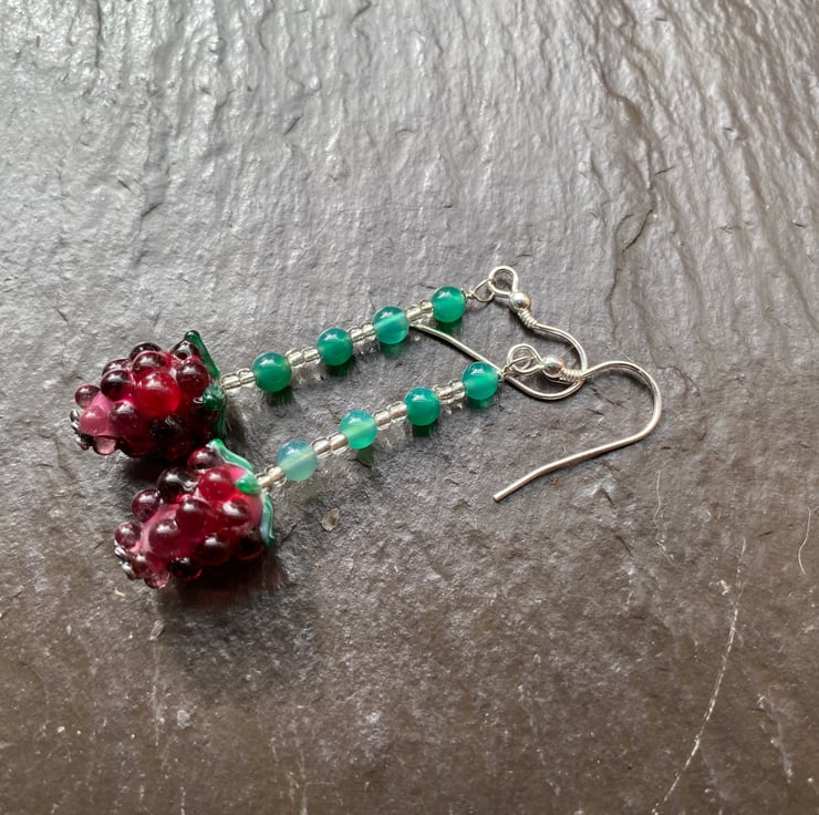 Delightful Glass and Agate beads drop earrings 6cm long