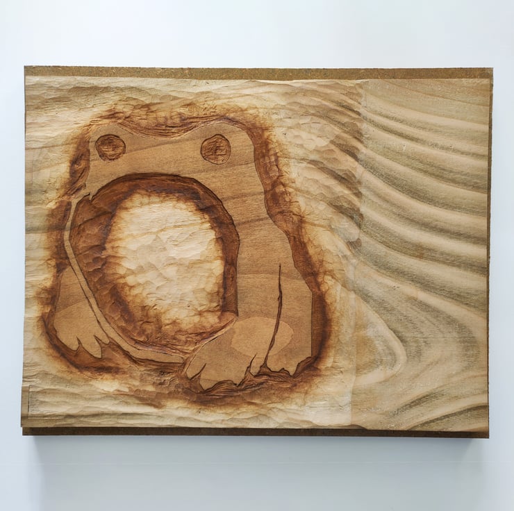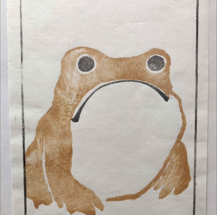 A woodcut print based on Matsumoto Hoji’s “Frog” design, from Meika gafu which was originally published 1814.