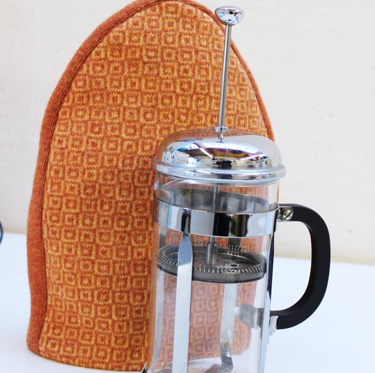 Geometric design cafetiere cover in  orange
